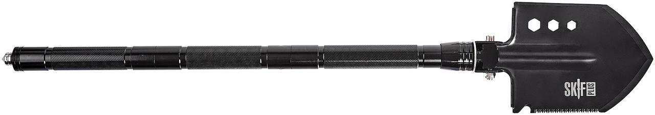 Складна лопата Skif Plus є сучасним зразком багатофункціональної лопати, яка крім своєї складної конструкції об'єднує в собі відразу кілька важливих інструментів: лопату, ніж, пилку, сокиру і відкривачку для пляшок.